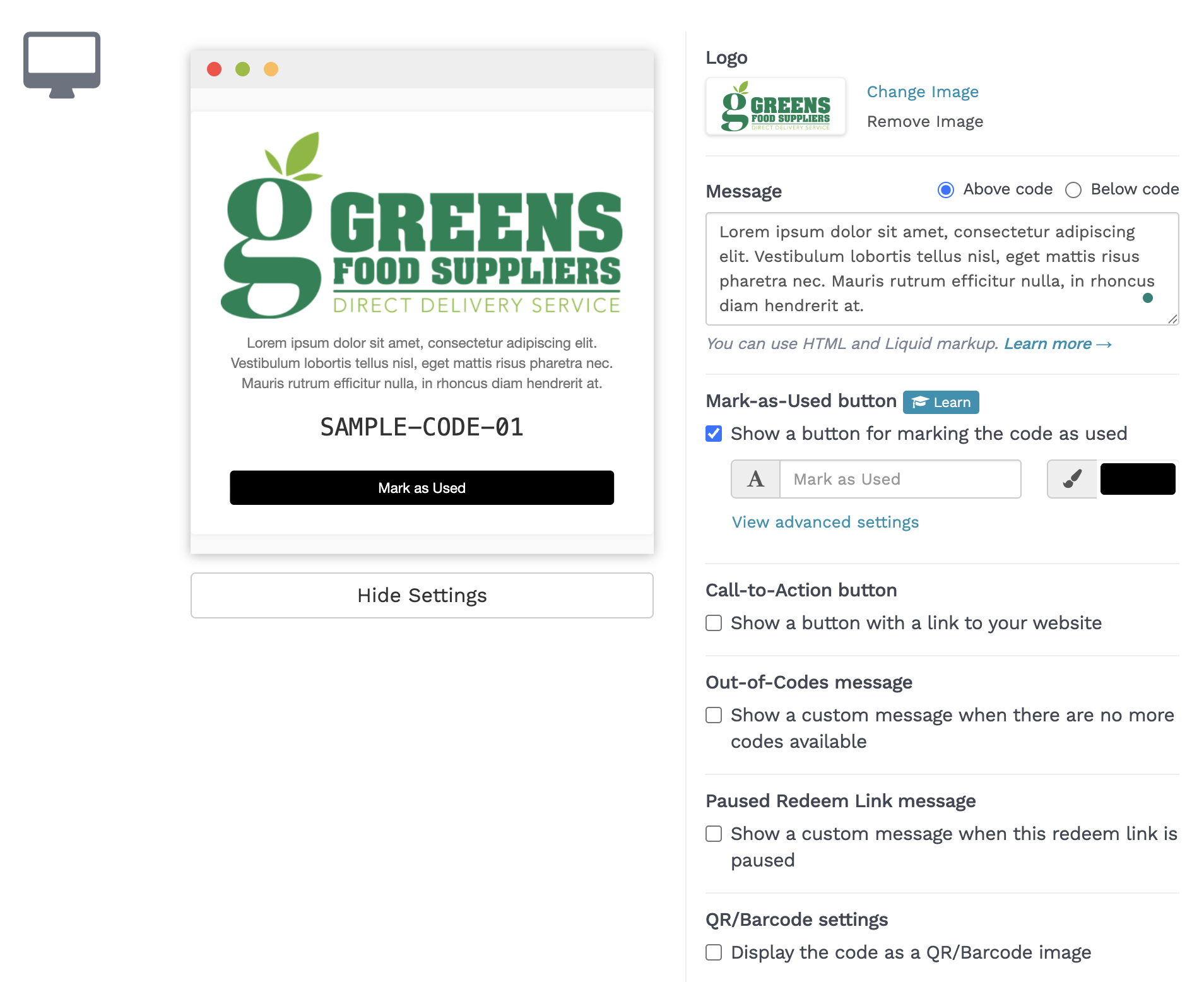 The Redeem Link lets you send unique, single-use codes to customers via email — without exposing the code directly in the message.